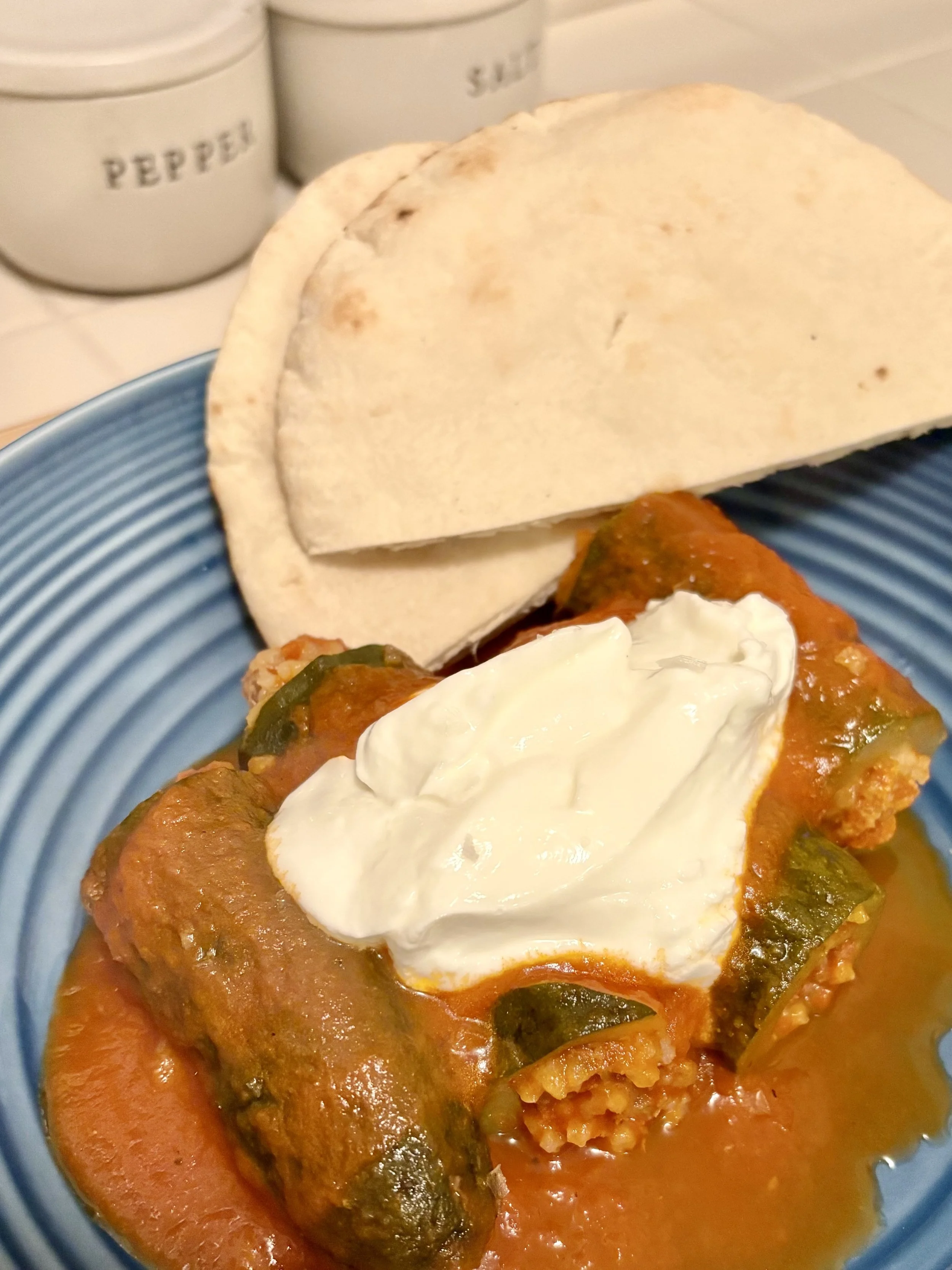 It’s one of those meals that requires a bit of preparation up front, but it’s totally worth it. The zucchini gets hollowed gently so it doesn’t split, the meat-and-rice filling is packed just loosely enough to give the rice space to expand, and everything simmers in a tomato broth that adds a depth I can taste as I write this. It’s comforting, reliable, and deeply nostalgic — dinner-party worthy, but humble enough for a Tuesday night.